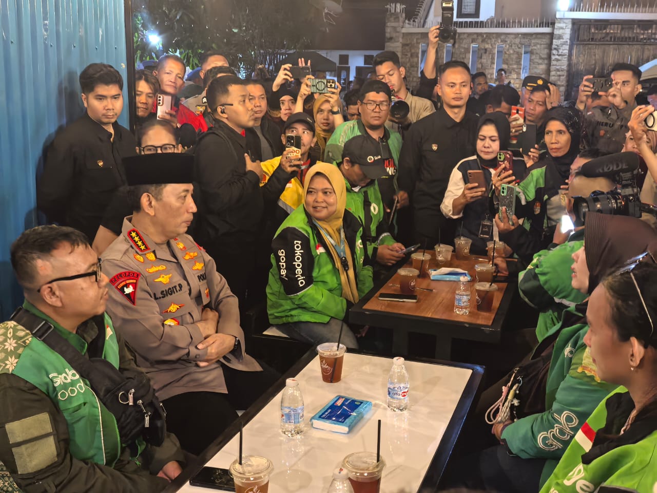 Dalam suasana santai, Jenderal Sigit menyempatkan diri berdialog dengan perwakilan pengemudi dari berbagai aplikator, mulai Gojek, Grab, Maxim, hingga Shopee. Interaksi ini dimanfaatkan Kapolri untuk mendengar langsung tantangan yang dihadapi para pengemudi di lapangan, terutama terkait keamanan dan kenyamanan mereka saat bekerja di malam hari.